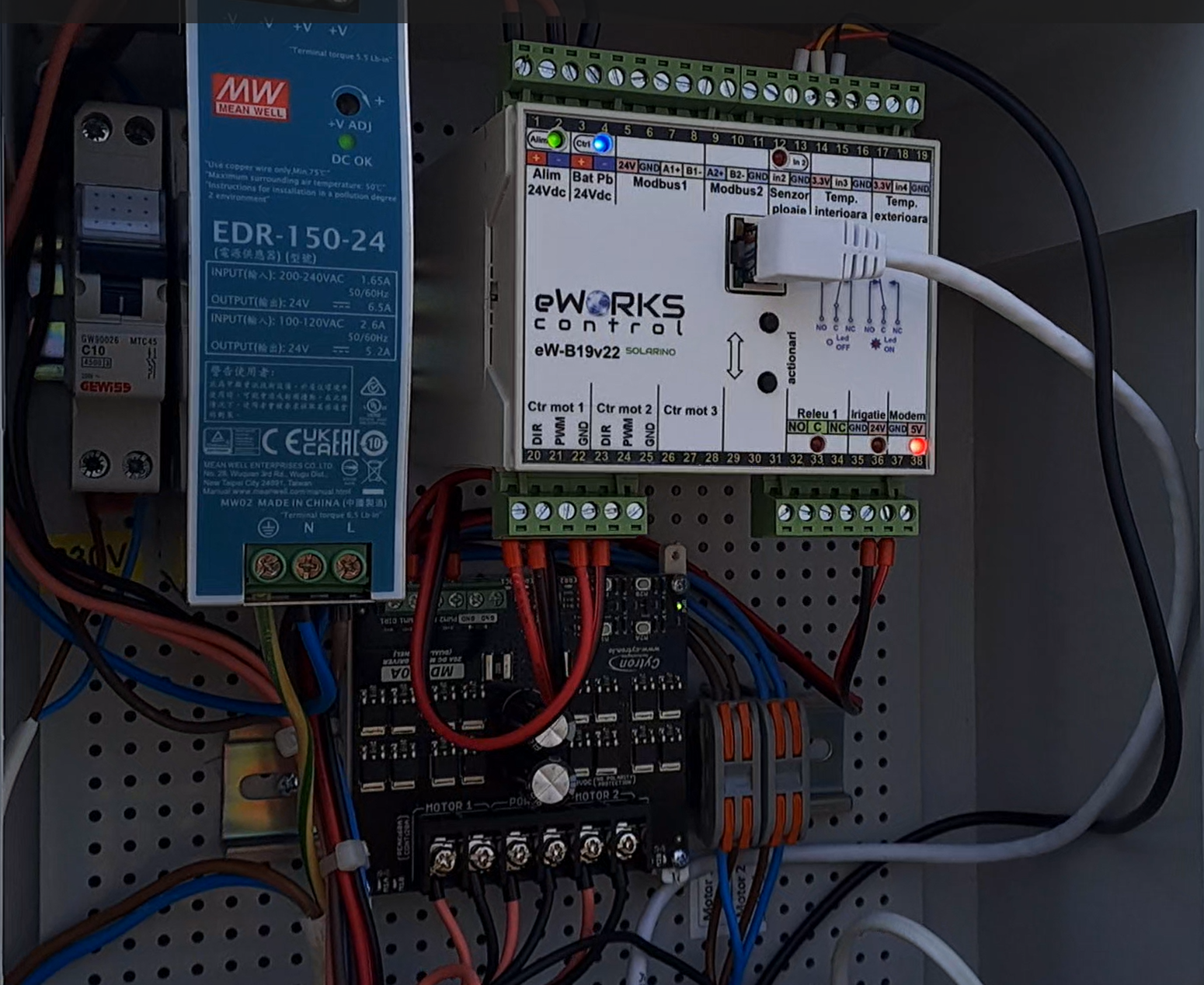 - Eficiență Energetică: Include un transformator de 24V integrat, sistemul necesitând doar conexiune 220V și legarea motoarelor pentru a asigura funcționarea.
